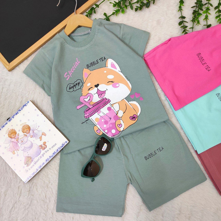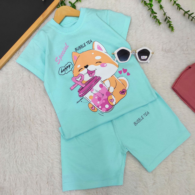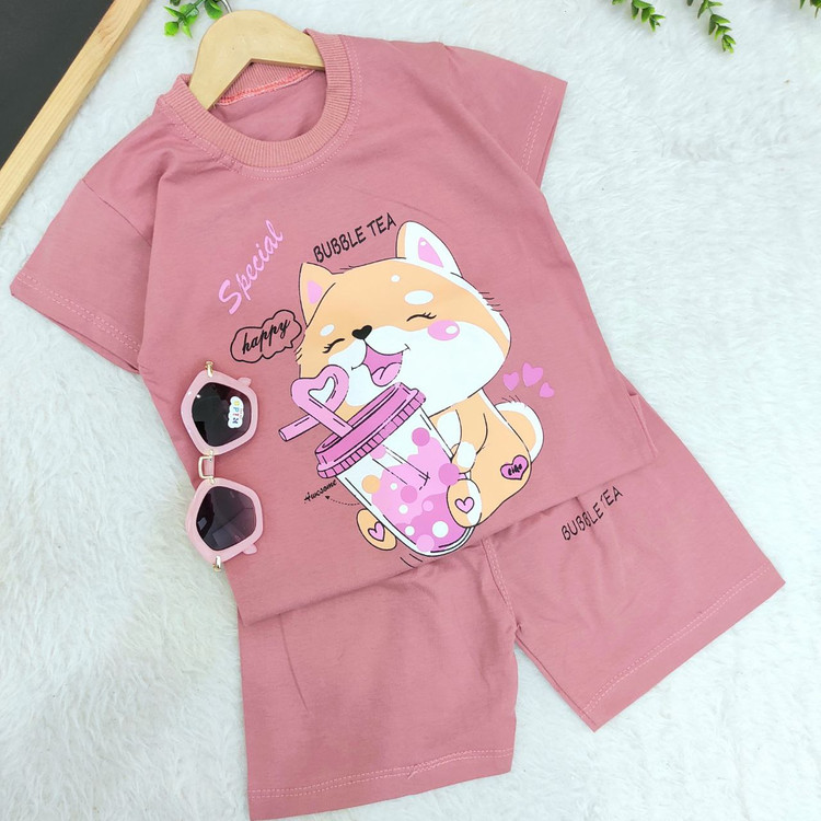 تیشرت شلوارک دخترانه گربه و bubble tea