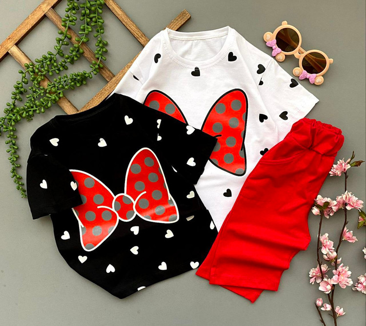 🔴 تیشرت شلوارک دخترانه طرح پاپیون 🎀🎀