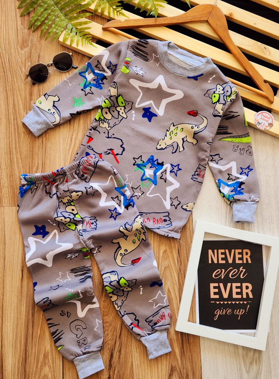 بلوز شلوار تو کرک وارداتی بچگانه طرح دایناسور و ستاره