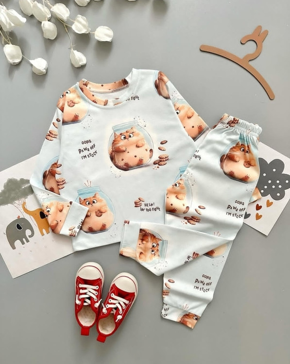 ست بلوز شلوار راحتی بچگانه طرح گربه 🐱 😍