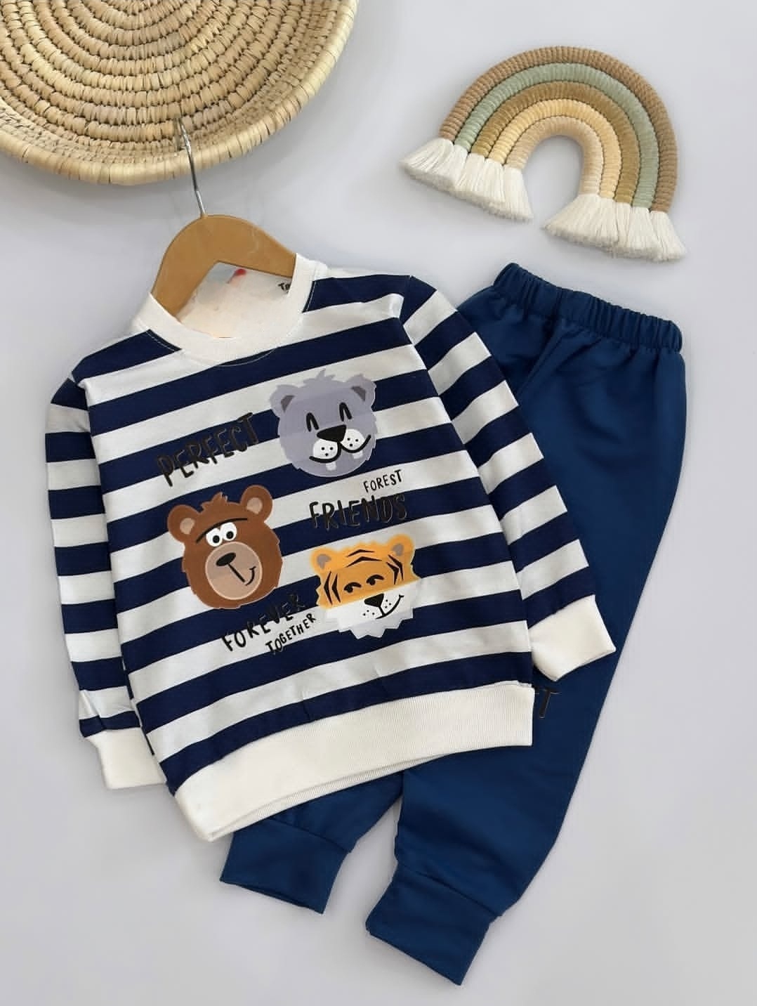 🌸🌸 بلوز و شلوار پسرانه راه راه طرح حیوانات