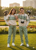 🔴ست بلوز و شلوارخواهر برادری طرح فشن جیب دار
