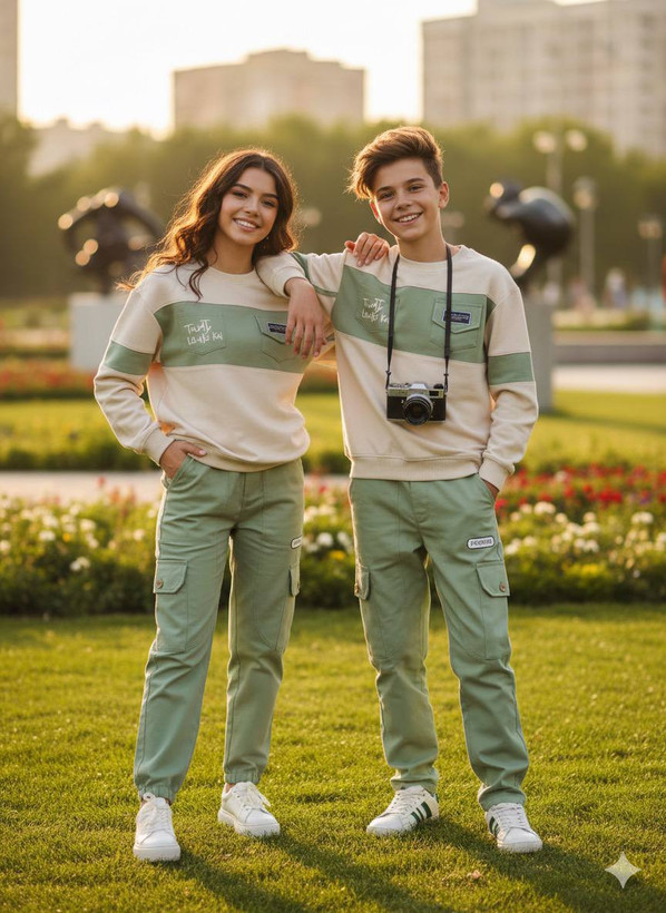 بلوز شلوار بچگانه خواهر برادری فشن جیب دار